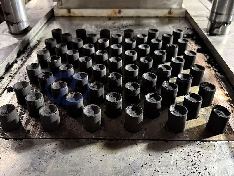 傳統(tǒng)的燒烤炭多為機(jī)制木炭,是用來鋸末原料先成型后碳化。蘭炭粉成型炭相反,先將原料碳化后再成型,通過加入炭粉粘合劑用機(jī)器擠壓成各種形狀的人造木炭品種。資源豐富的蘭炭末與木炭末在比重、活性等方面非常相似,